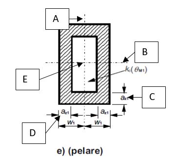 Beträffande måttet c1 så bör det tolkas som avståndet mellan plattans kant och pelarens innerkant. Detta stämmer med definitionen i ekvation (6.41) om pelaren står kant i kant med plattan. Det ger rimligt resultat även om pelaren står innanför kanten, eller om den sticker utanför kanten (i figur 9.9 a) bör c1 alltså motsvara måttet y, inte cy).