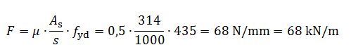 Kan jag då använda VRd,s =ASW*fywd(cot θ + cot α)sin α, som ger för 16 mm armering med avstånd 250 mm = 806 mm2 x 435 x (1.5+1) x 0,7 =613 kN (med cot θ =1.5 och 45 grader och ett lager). Eller ska jag använda VRd,s =ASW x fywd x sin α = 806 x 435 = 350 kN (samma förutsättningar som ovan)?