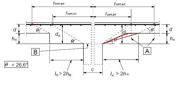 Kontrollen avser ett hörn som förenklat kan liknas med figur 6.15 längst till höger. Vid kontrollen enligt 6.4.4 är V(Ed) enligt ekvation 6.51 > än V(Rd,c) enligt ekvation 6.47. Ekvation 6.47 är slående lik ekvation 6.2.a i avsnitt 6.2.2 bortsett ifrån att den här ges i kN istället för MPa. Dock finns ett minsta värde enligt ekvation 6.2.b givet för ekvation 6.2.a.